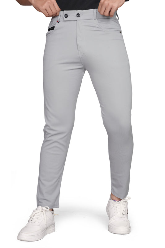 Light Grey Cotton Blend Formal Trousers Pants For Mens