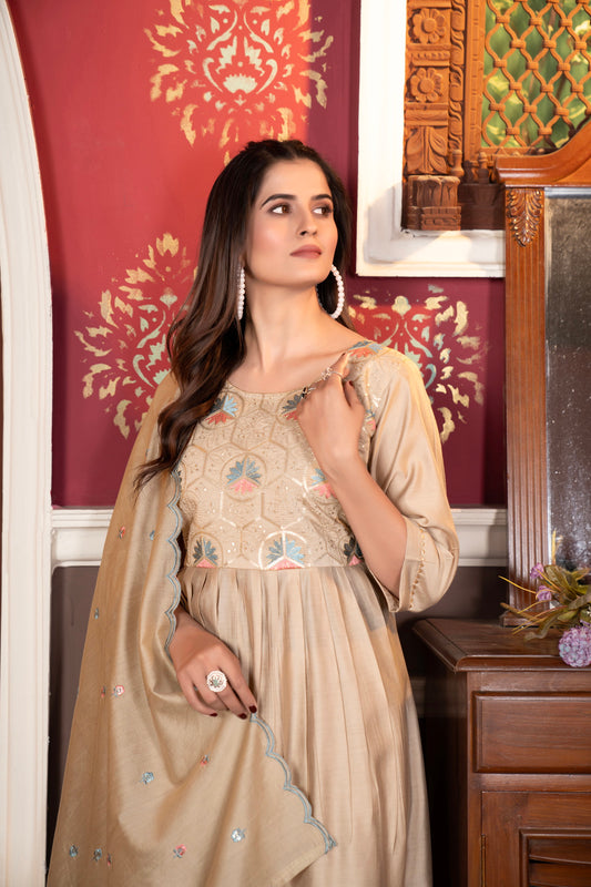 Women's Viscous Chanderi Kurta With Silk Dupatta Set