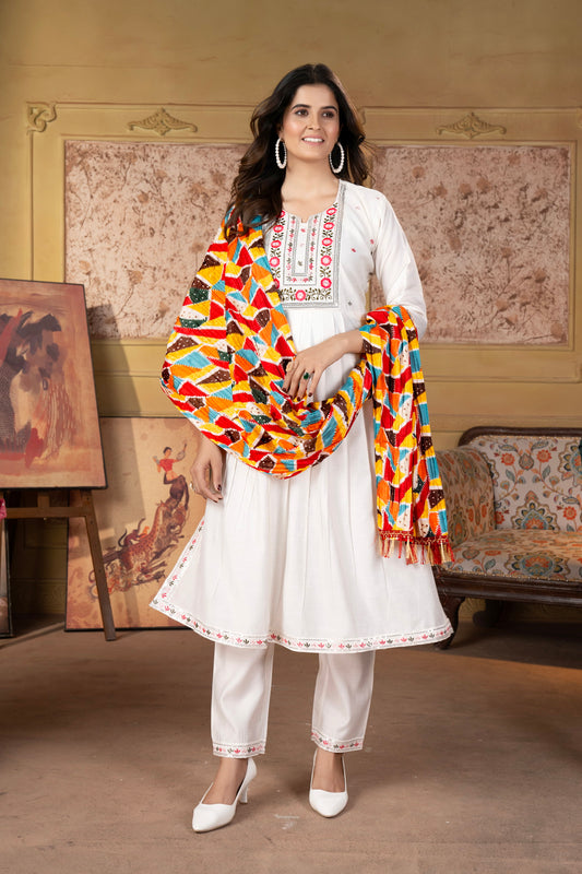 Women's Viscous Rayon Flared Kurta With Pant And Cut Work Dupatta