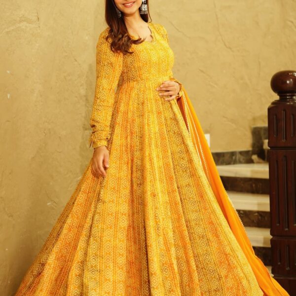 Yellow Beautiful and Stylish Full Flair Gown for Women