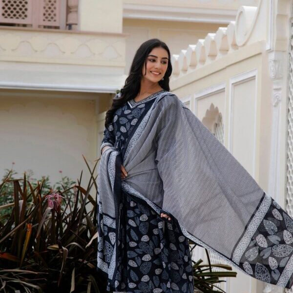 Floral Printed Rayon Kurta With Pants & Dupatta
