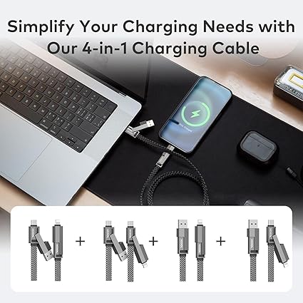 ”’Durable & Flexible Design: High density nylon braided cable,strong and anti-pull. Durable braided nylon cable with strong aramid fiber support cores and slim,””Equipped with all essential charging connectors, Featuring IP, USB-C ,Micro connectors, this cable charges IP & Android smartphones, tablets, and all other USB-powered devices. 1 cable for all your devices!””TPE-coated connectors to conveniently connect and withstand wear & tear. Lasts 3Ã longer than other cables.”’