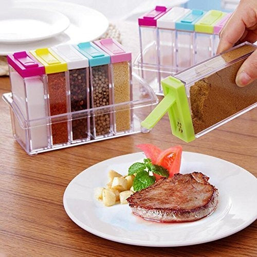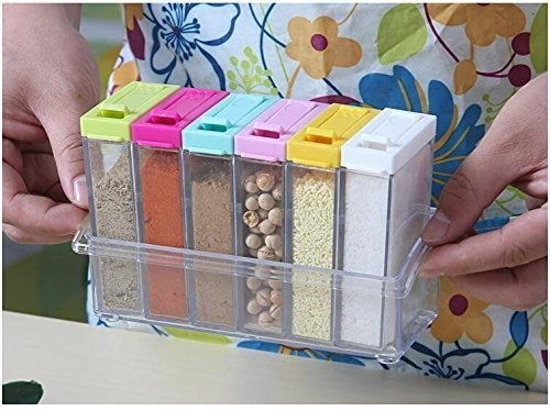 The set of 6 spice containers fits all your spice needs with ease. The easy flip lids allow you to sprinkle just the right amount of spice.