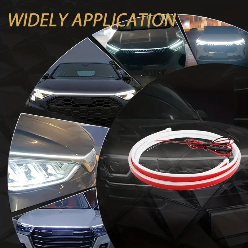 - 70.8 Inches Car LED Hood Light Strip – (It is NOT recommended to be cut short)Pls confirm the required length you need before placing an order.It is very soft and easy to bend.It can be connected to the clearance of the engine hood