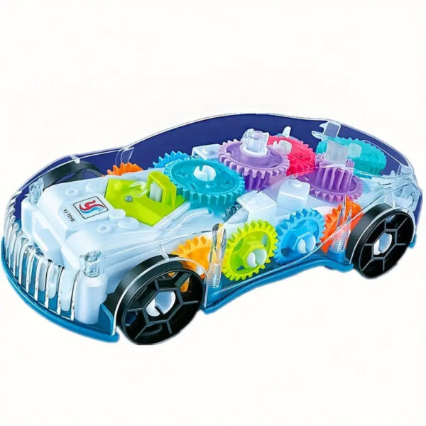 - 360 Degrees Rotating Transparent Concept Racing Car with 3D Flashing Led Lights. Transparent body to see gear mechanism with awesome sound effects. It is a bump and go car so the fun never stops