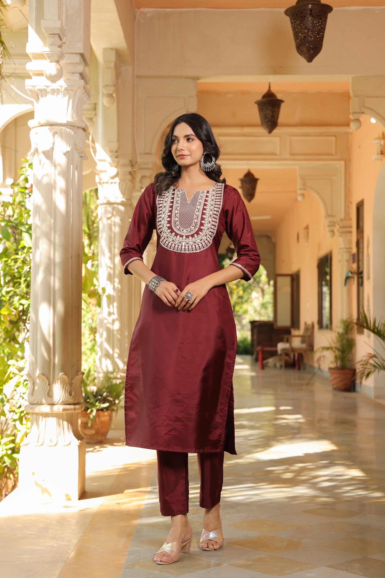 Sleeves : Three – quarter regular Sleeves