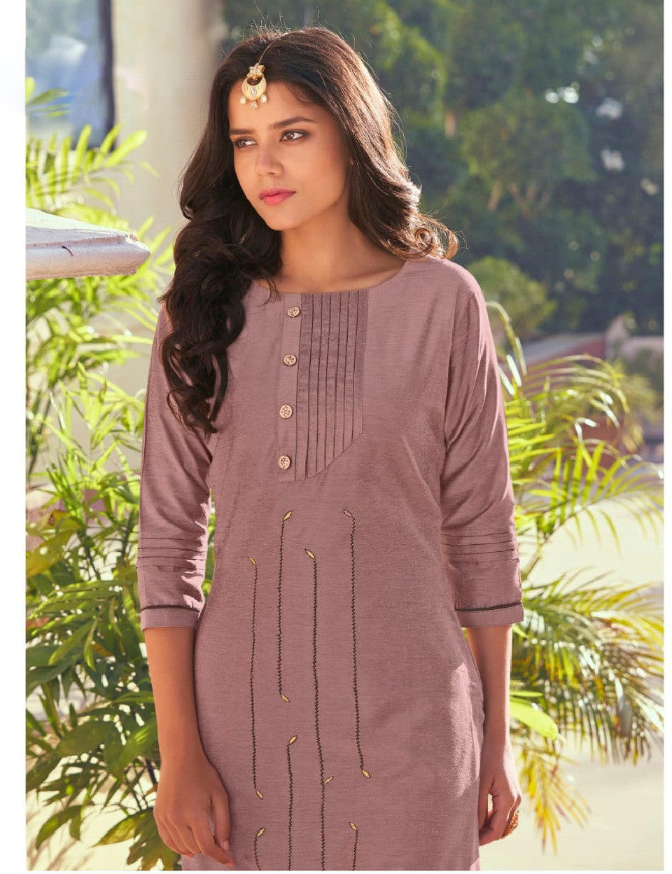 Lilac Brown Embroidery Work Roman Silk Kurta Set