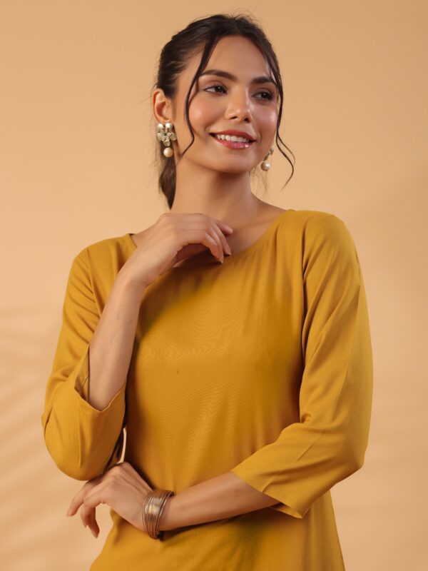 Discover effortless style with our Mustard yellow Round Neck Straight Kurta With Trouser. Crafted from high-quality fabric, this kurta features a sophisticated round neckline and a straight silhouette for a flattering fit. Paired with matching trousers, this outfit is perfect for any occasion. Elevate your wardrobe with this versatile and chic ensemble.