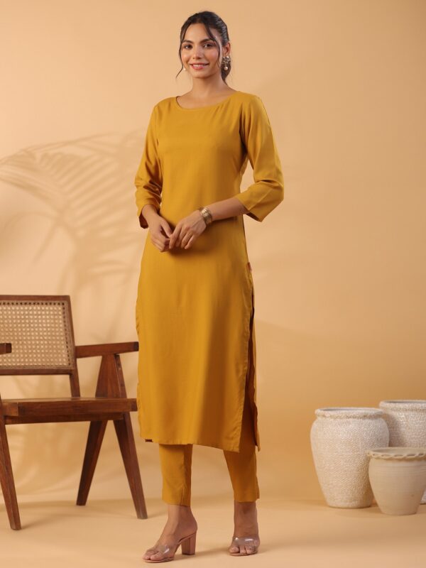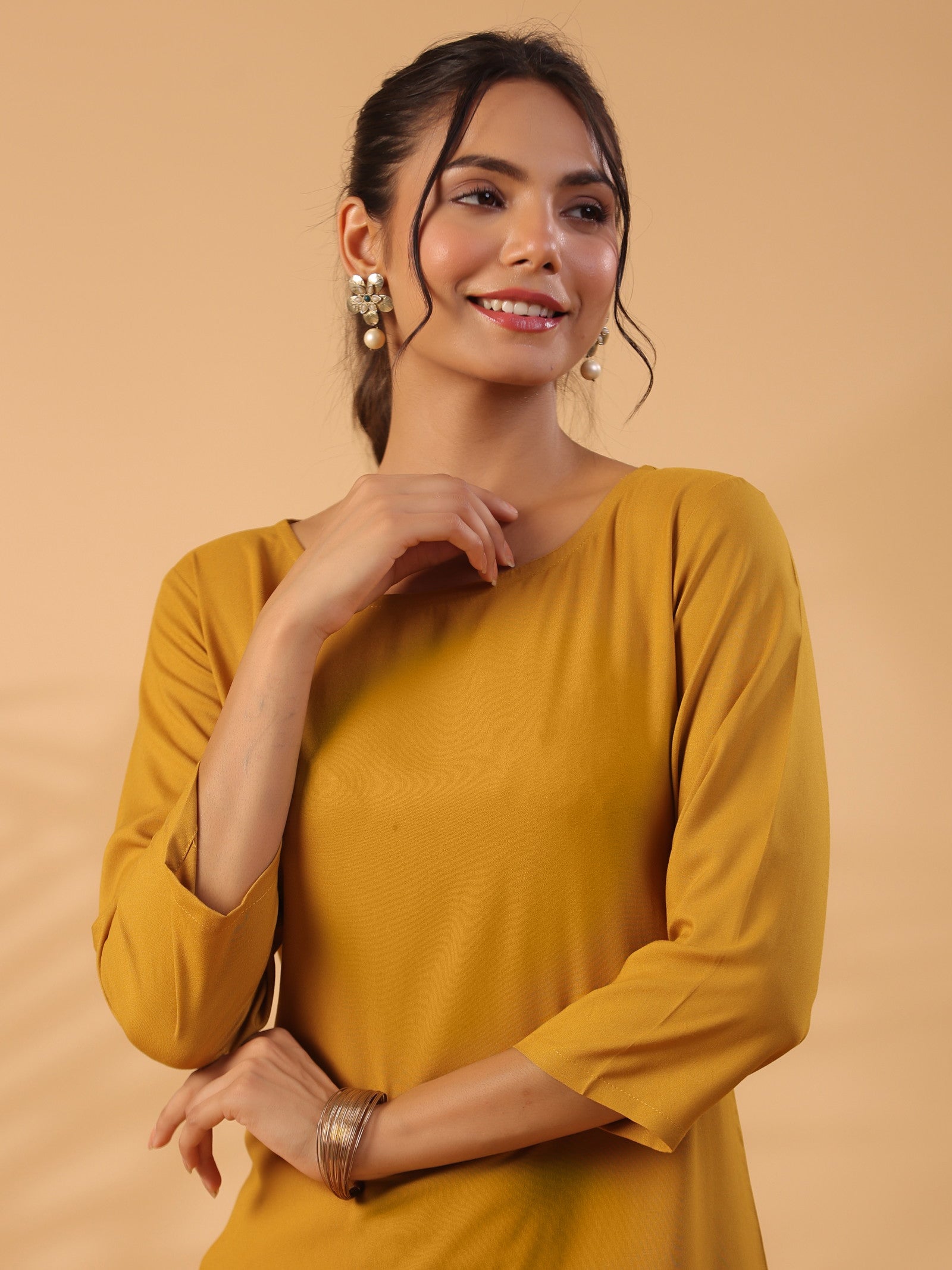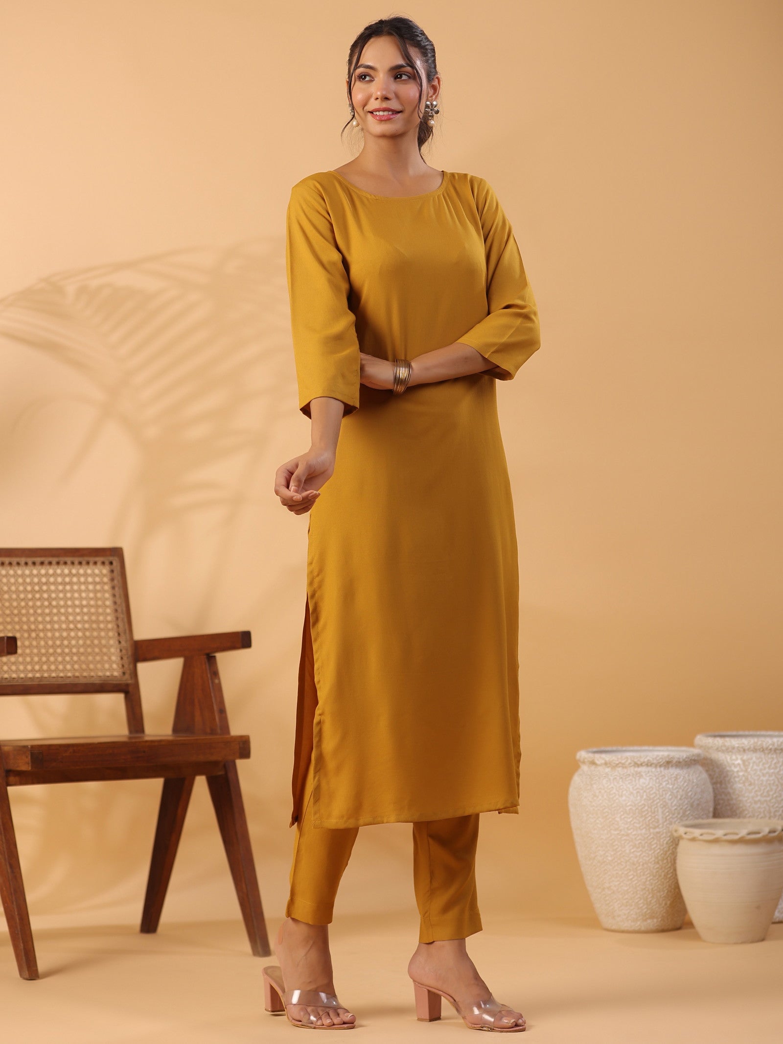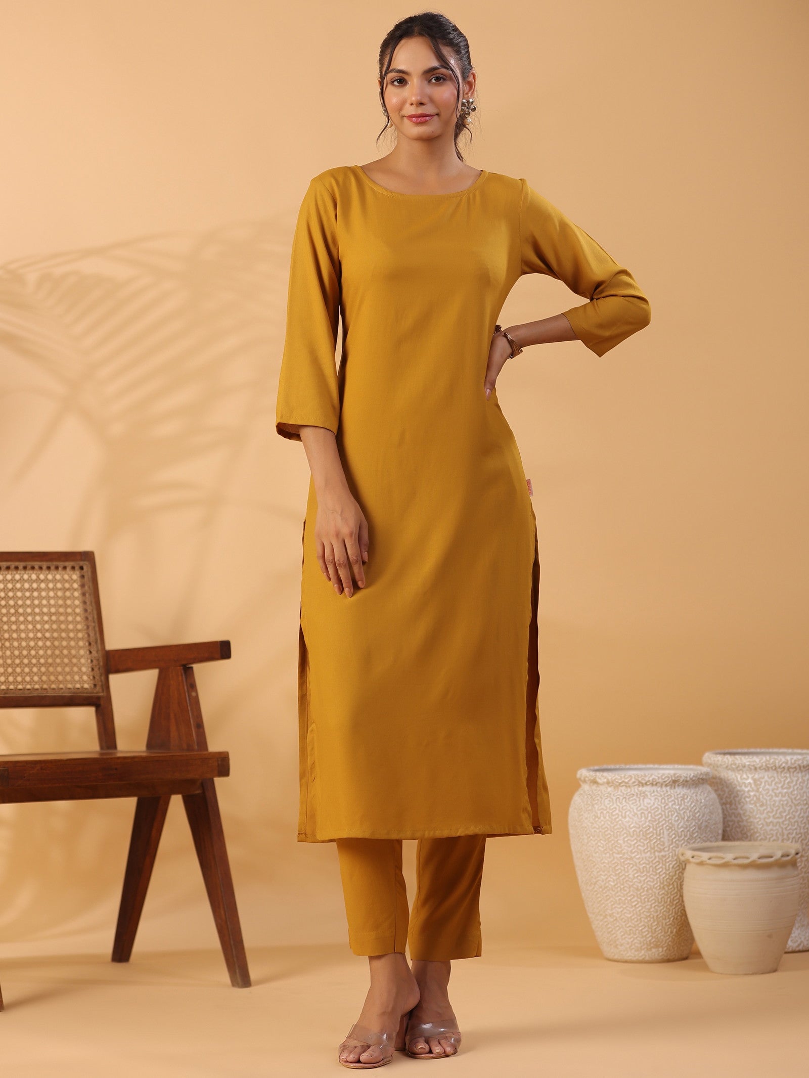 Mustard Yellow Round Neck Straight Kurta With Trouser