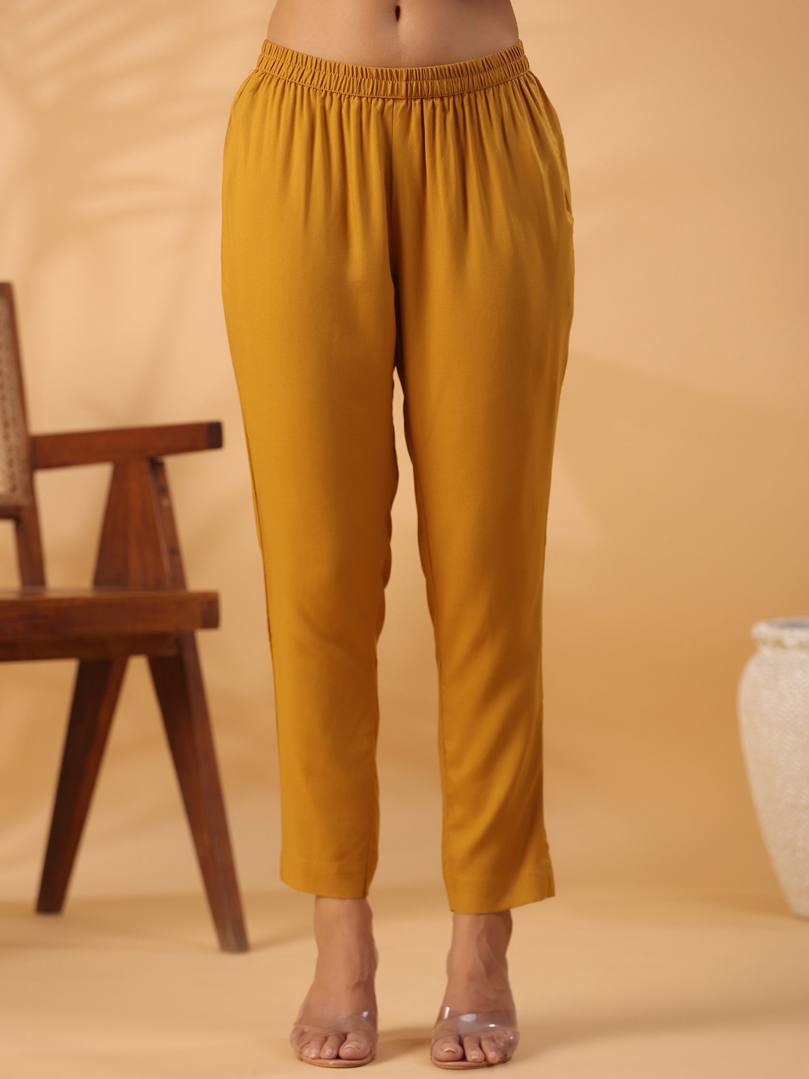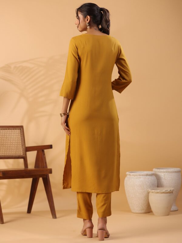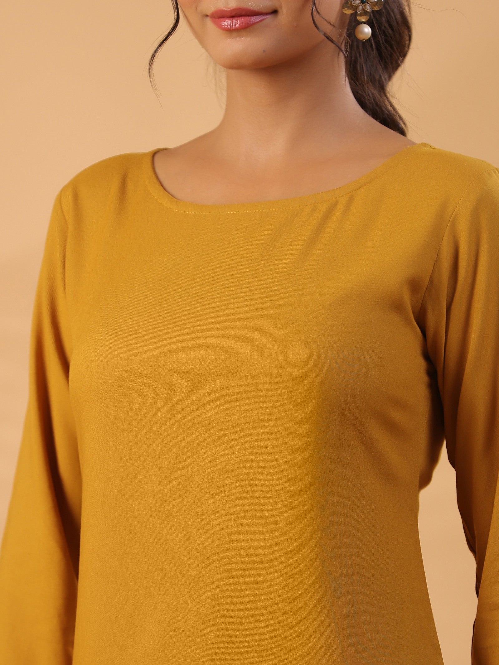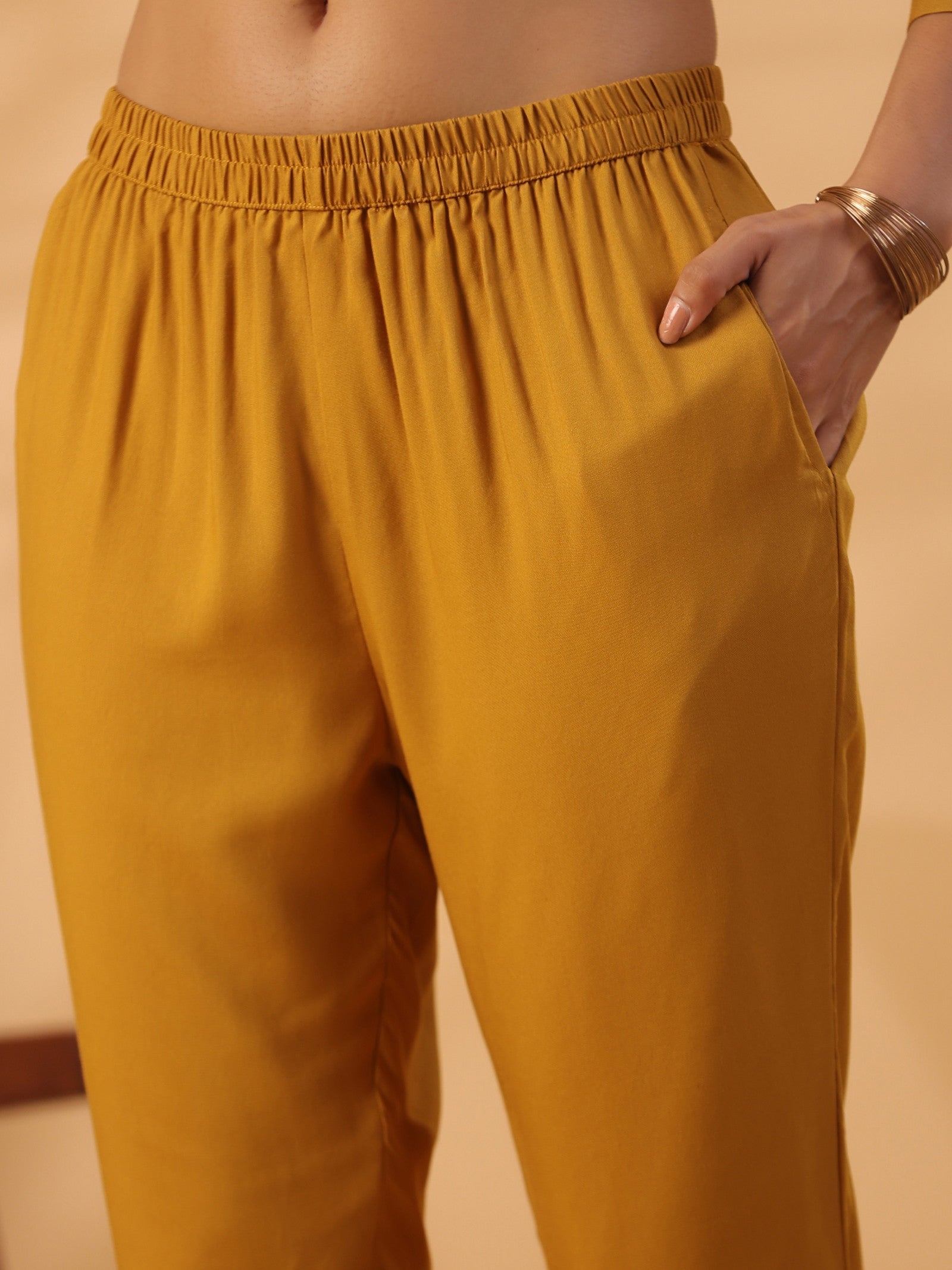 Mustard Yellow Round Neck Straight Kurta With Trouser