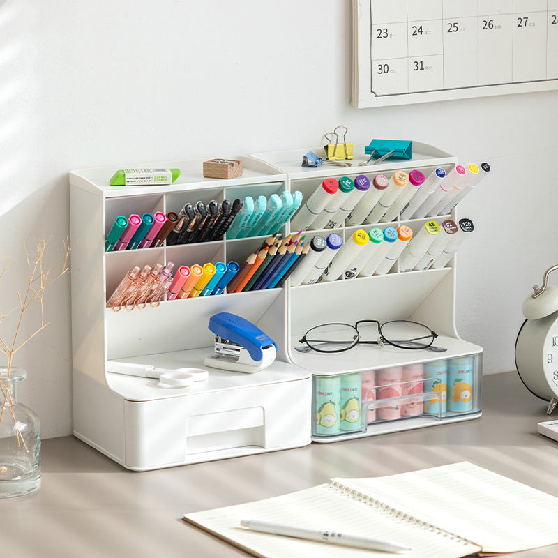 Desk Organiser Stationary Organizers With Drawers,Versatile Pen Holder,Pen Stand,Desk Organiser,Office Table Accessories Pen Stand For Study Table Home,Office,School-1 Pc White – Plastic