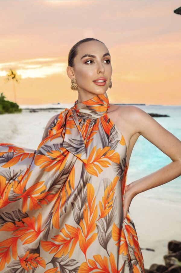 Orange Premium Persian Silk Printed Beach Party Outfit
