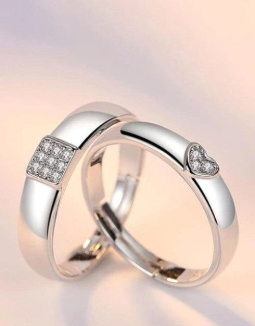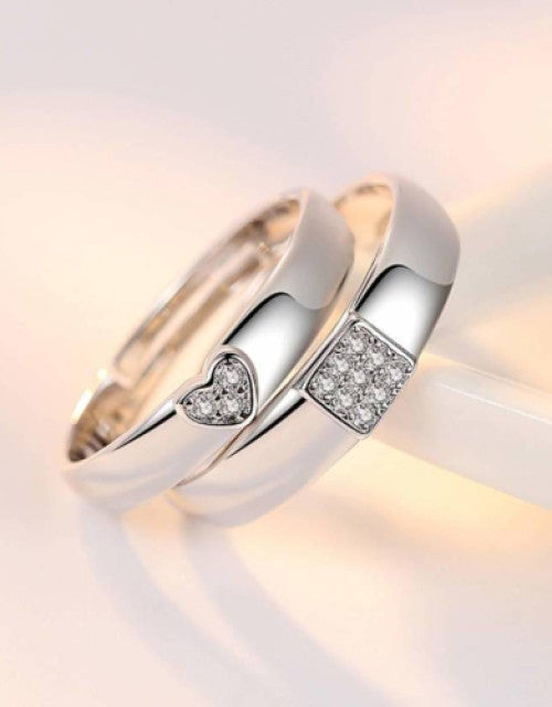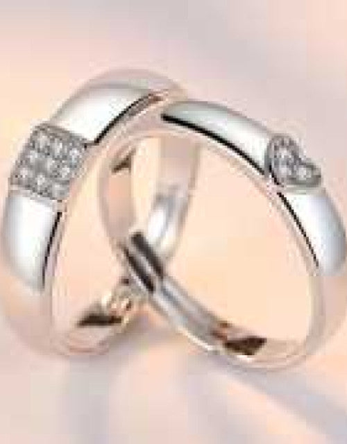Silver-Plated Cubic Zirconia-Studded Adjustable Couple Rings