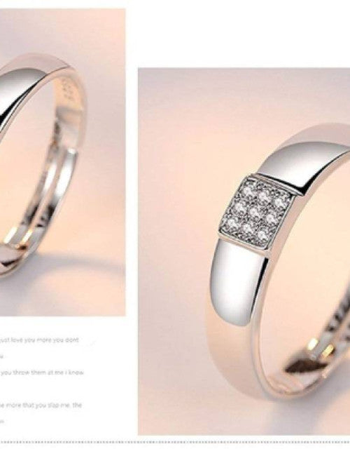 Enhance your style with these beautiful Silver-Plated Cubic Zirconia-Studded Adjustable Couple Rings. The silver plating adds a touch of elegance while the cubic zirconia studs give a spark of brilliance. The adjustable design allows for a perfect fit, making them the ideal accessory for couples looking to showcase their love.