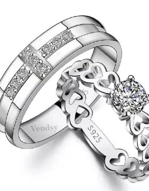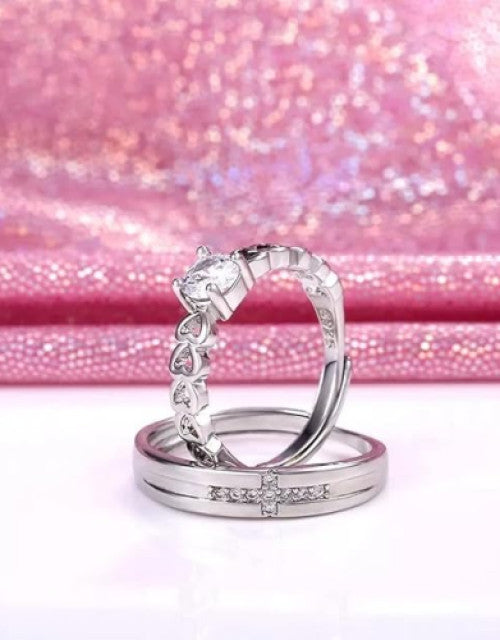 Stainless Steel Silver Plated Zirconia Studded Couple Rings