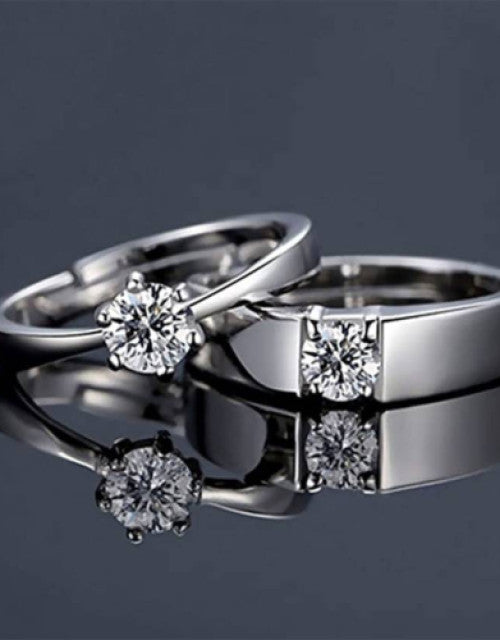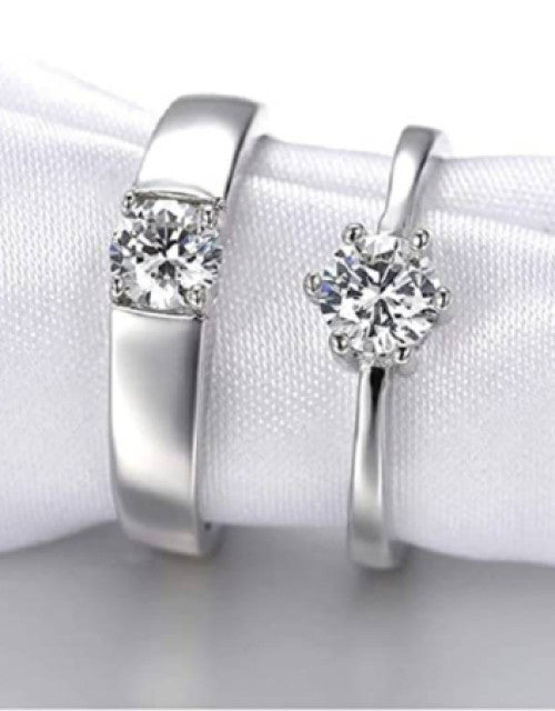 Crafted from durable stainless steel and plated with sterling silver, this ring set features sparkling zircon stones for a touch of elegance. A perfect combination of strength and style, these rings make for a stunning addition to any ensemble.