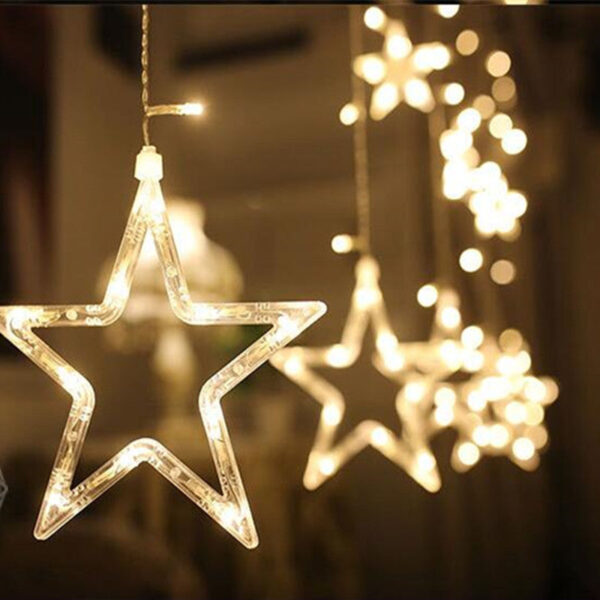 - Festive Brilliance: Add a magical touch to celebrations with 12 Stars LED Diwali Lights Curtain String Lights. Warm white lights resembling sparkling stars create a celestial ambiance for Diwali, Christmas, and other festive occasions.
