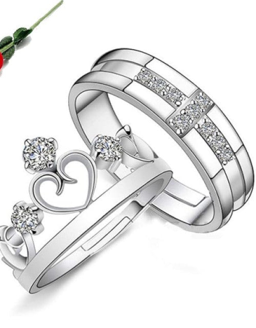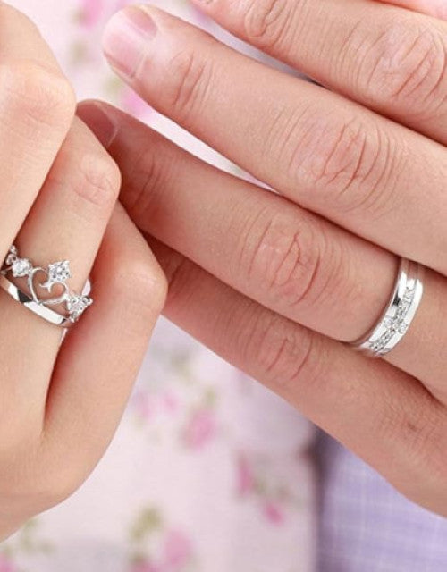 Expertly crafted from sterling silver, these adjustable couple rings are adorned with Swarovski Elements for a touch of elegance. Perfect for expressing your love, these rings symbolize unity and commitment for a meaningful relationship. With its adjustable design, these rings are suitable for any finger size and make for a timeless piece of jewelry.
