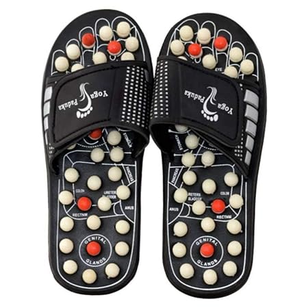 ‘About this item””Prevents Leg Cramps: With daily usage, people who have leg cramps problems, they can get rid of it.””Acupressure Points: There are so many different types of acupressure points on the surface of the Massage Orthotic Reflexology Sandals with Acupressure Knobs.””Large Size: These slippers are available in a great size. You can buy it and then adjust them as per your feet size.””Stimulates the Body: There are specific points in which the slippers points touch and stimulates your entire body.””Wear Daily: By wearing the slippers regularly, you can achieve total relief and stress-free routine.”’