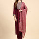 Maroon Colour Blend Silk Embroidery Work Party Wear Kurta Pant Dupatta Set For Women's