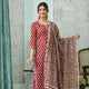 Red & Cream Printed Fancy Kurti With Bottom & White Dupatta set