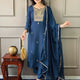 Women Embroidered Rayon Slub Straight Kurta With Pant Dupatta Set